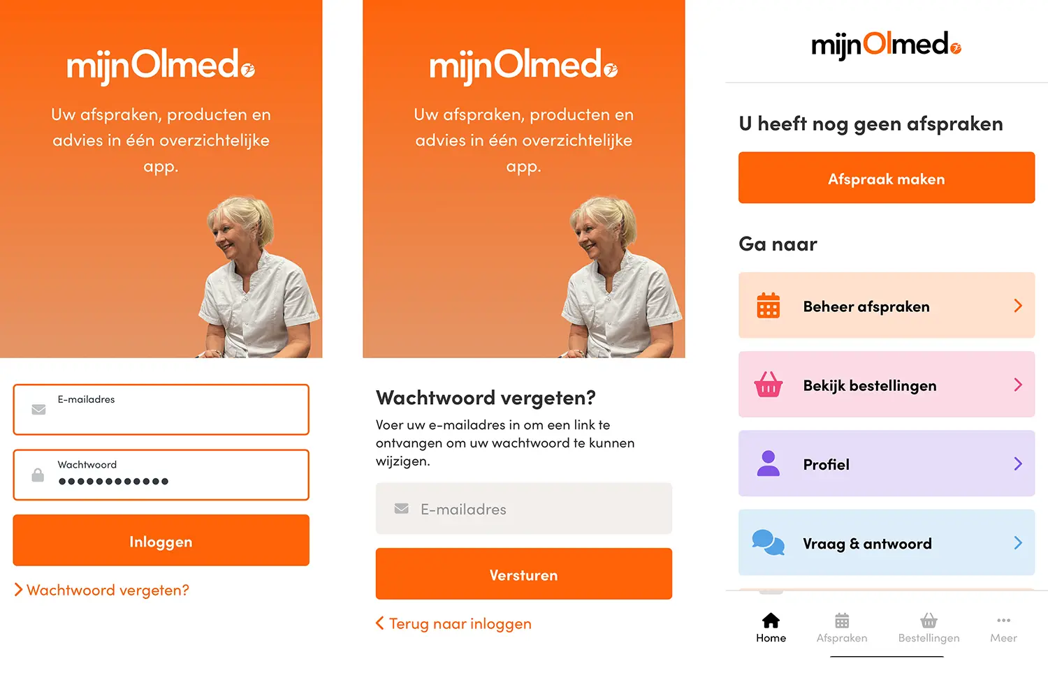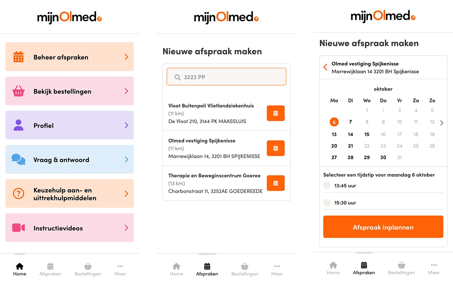 In de Olmed-app kunt u eenvoudig afspraken inplannen, wijzigen of annuleren.